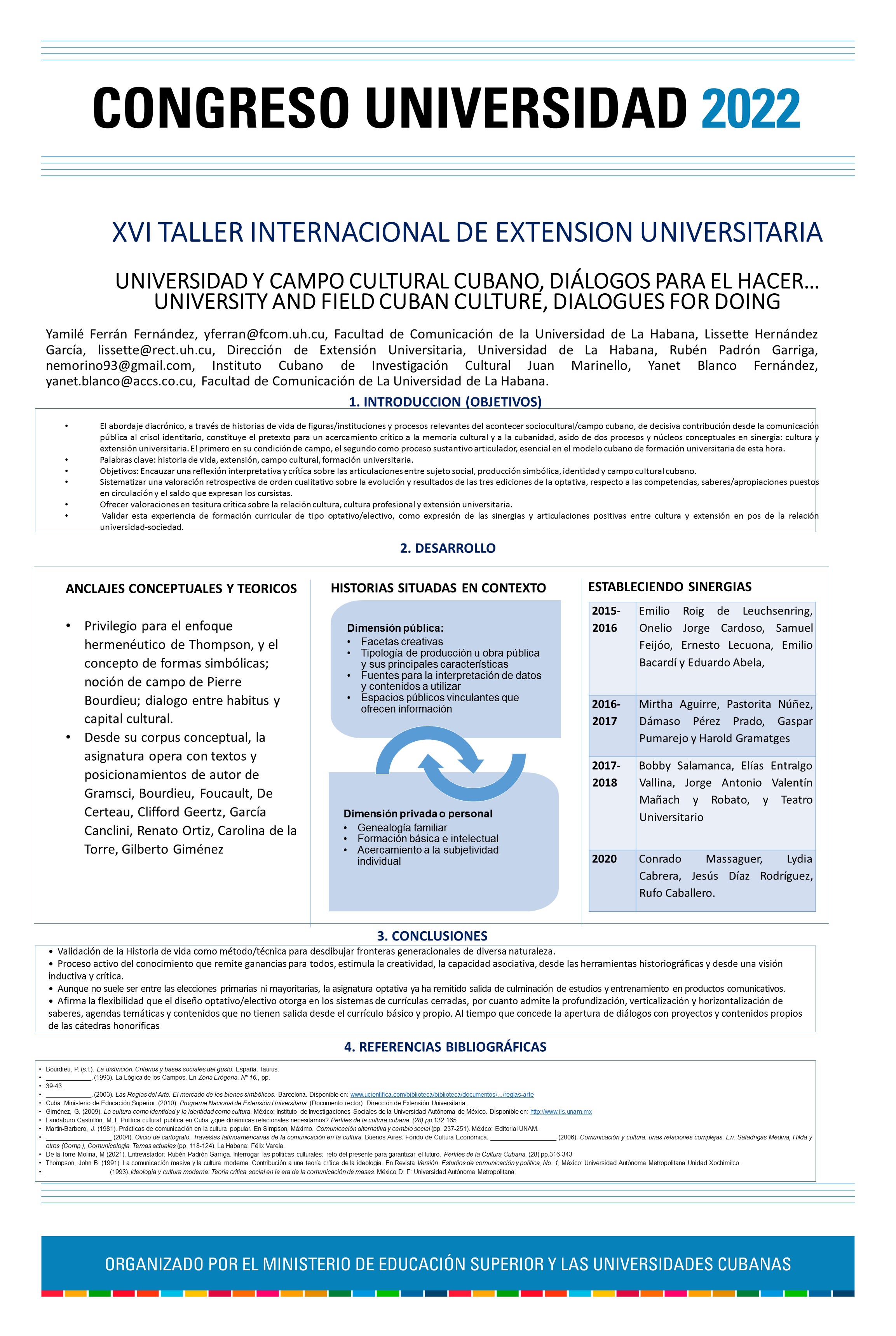 EXT-006. Universidad y Campo Cultural Cubano: diálogos para el hacer.